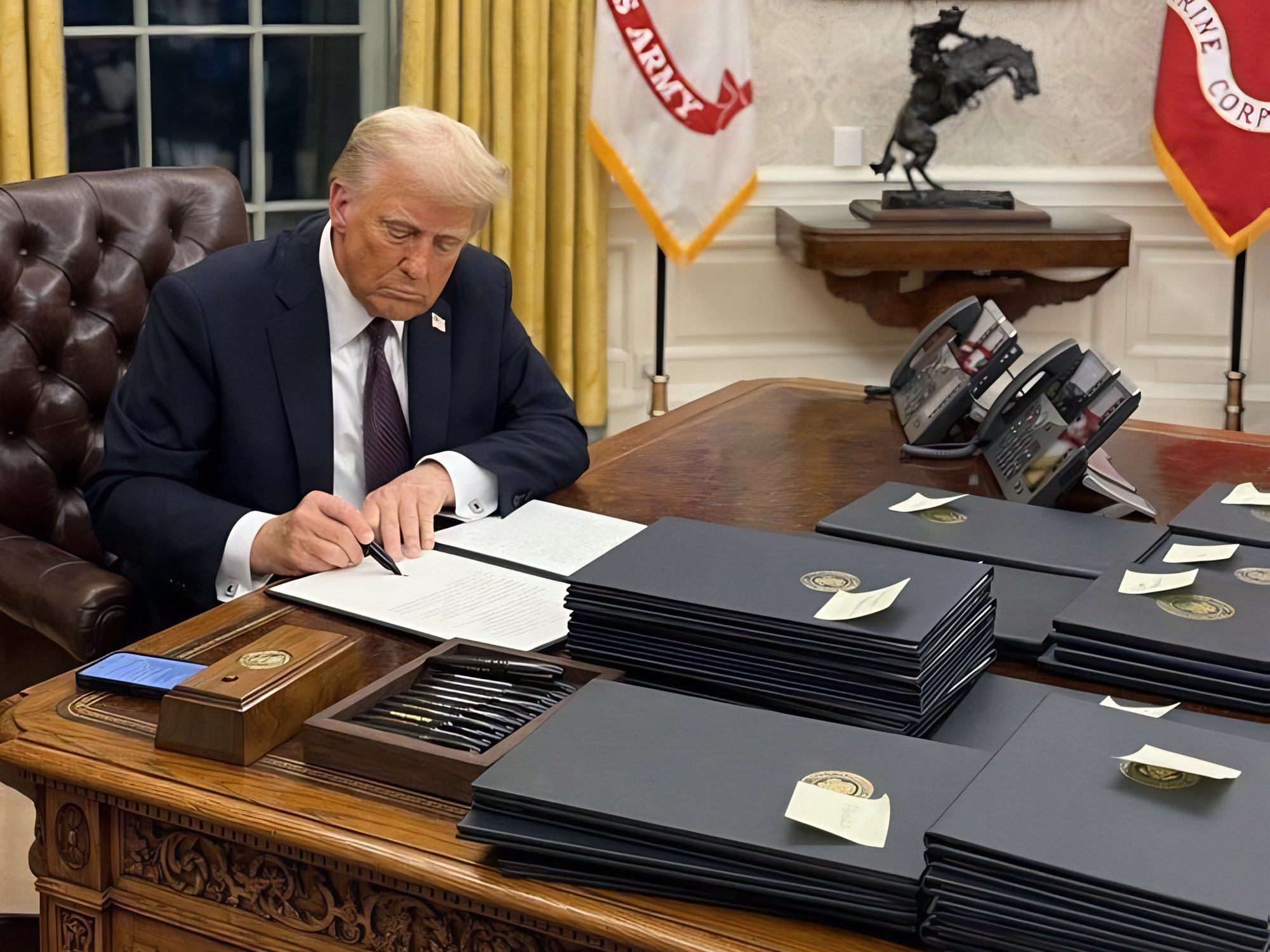 Po przemówieniu w Capitol One Arena Trump zaczął podpisywać szereg dekretów wykonawczych, a po dotarciu do Gabinetu Owalnego wydał kolejne. Prezydent Donald Trump podpisał serię aktów wykonawczych kilka godzin po swojej inauguracji 20 stycznia.
